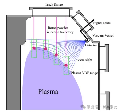 精准识别等离子体边界尤其是最外闭合磁面,是保障托卡马克装置平衡重建、约束优化和主动控制的核心环节。随着国际热核聚变实验堆(ITER)、演示核聚变反应堆(DEMO)等装置向长脉冲、高功率运行迈进,对边界诊断技术的实时性、高精度和模型无关性提出了严苛要求。传统基于磁测量诊断的最外闭合磁面(LCFS)识别方法,由于积分器带来的漂移问题,无法满足未来聚变堆长脉冲的需求。基于可见光相机的等离子体光学边界识别方法,没有积分器漂移问题,且物理模型简单,可以适用于未来长脉冲放电,但该方法存在边界不清晰、图像计算量大的明显局限。新奥聚变研发团队基于光学边界识别方法,创新性地提出了一种基于硼粉注入的主动光学边界识别技术,并成功在“玄龙-50U”装置上进行了验证,为磁约束核聚变装置的等离子体边界诊断与控制提供了全新解决方案。