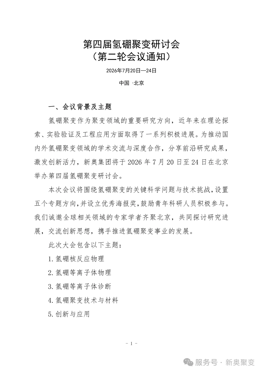 第四届氢硼聚变研讨会(第一轮通知)